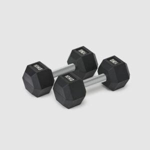 High grade dumbbells with straight handles and full knurling for strong grip. Hexagonal design means dumbbells will stay put when you place them down. Visible at the slighest glance, each dumbbell has a white painted embossed weight for easy weight identification. A perfect and necessary addition and for both home and commercial use. The manufacturing process has been scrutinised and perfected to ensure maximum durability. Elevate your training with this durable and versatile premium rubber hex dumbbell. Grip size: 28mm diameter, 130mm length. Hex head- depth 9.5cm, height 12.5cm, width 14cm.